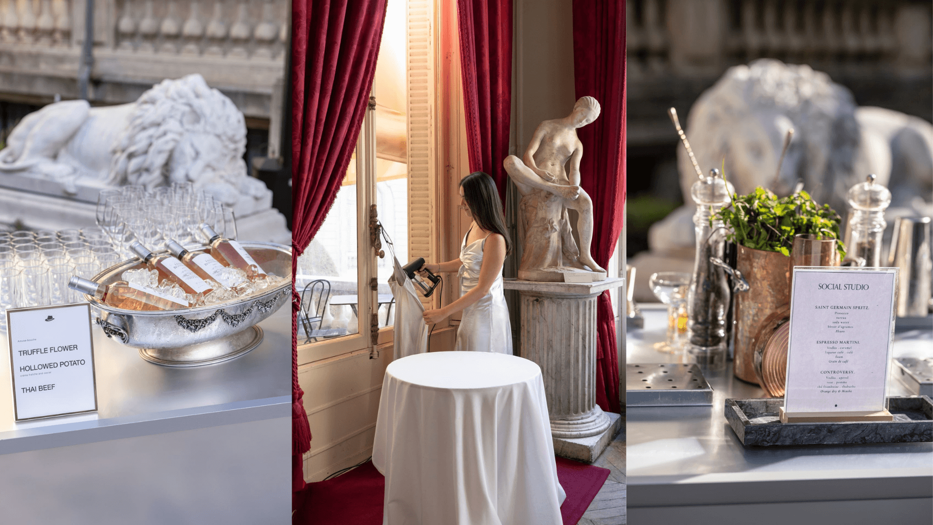 The second chapter unfolded at the Musée Jacquemart-André, where the celebration embraced timeless sophistication. Guests were welcomed into the museum’s courtyard before discovering its historic galleries reimagined through candlelight, live performance, and a custom silver runway that functioned as both stage and dining table. By merging contemporary design with a heritage setting, the evening offered a refined and memorable experience, highlighting Social Studio’s expertise in creating immersive, high-end events within iconic Parisian venues.